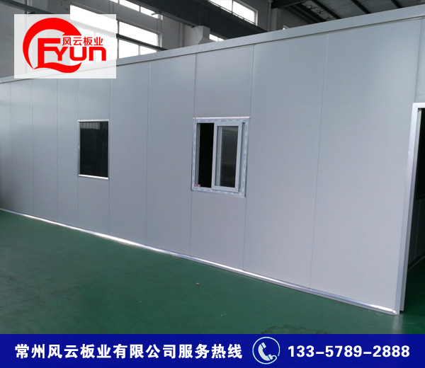 第三,整個隔斷的結(jié)構(gòu)做好,就可以進(jìn)行封墻面板。若是單層彩鋼板常規(guī)是采用900型或840型來封墻面,若用的夾芯板就采用950型或1150型夾芯平板來封墻面。